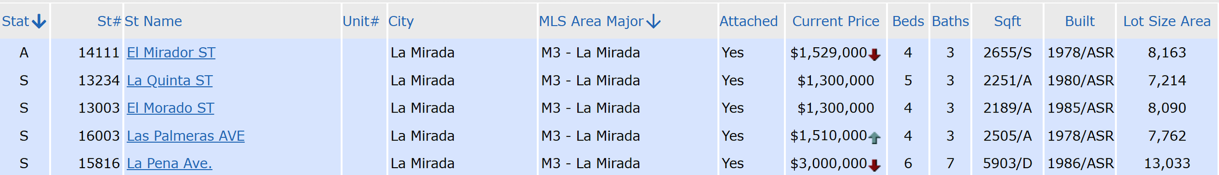 Homes are still selling quickly in La Mirada, with an average of 23 days to sell. For the last twelve months, sales in this neighborhood have averaged 26 days on the market before entering escrow.