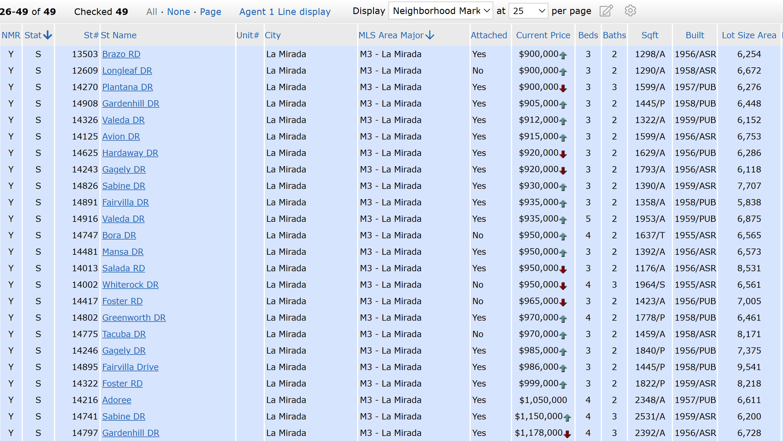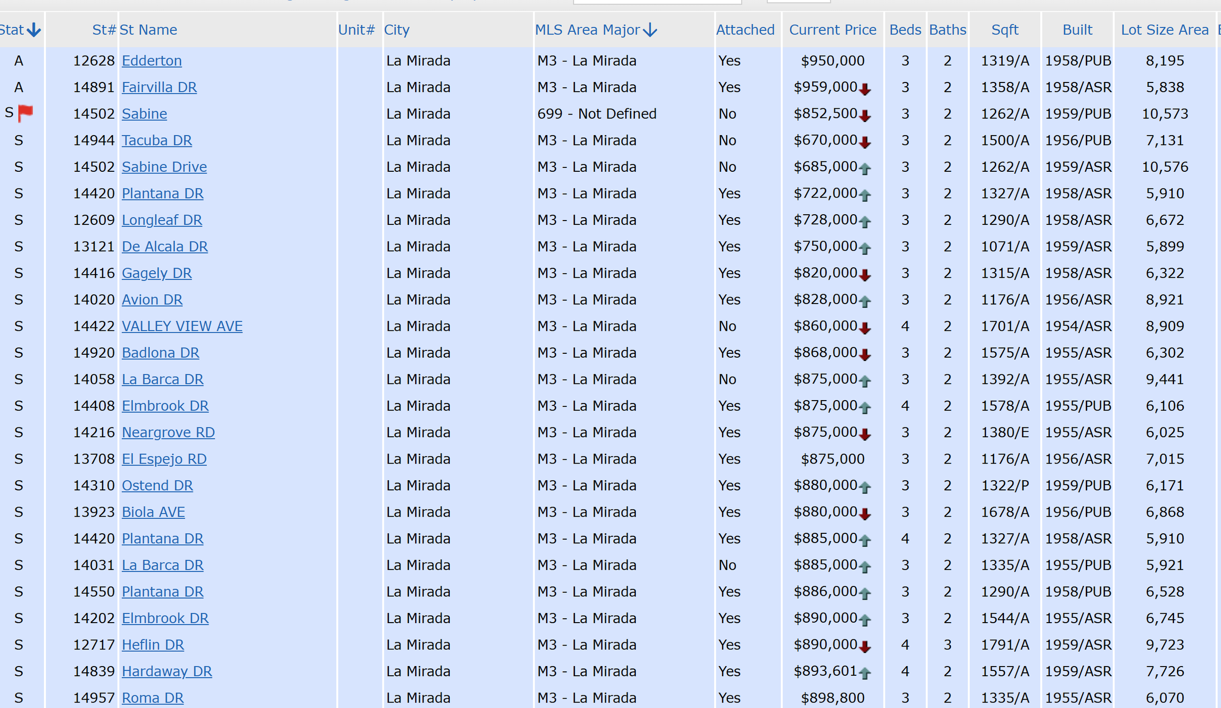 Homes are still selling quickly in La Mirada, with an average of 23 days to sell. For the last twelve months, sales in this neighborhood have averaged 18 days on the market before entering escrow.