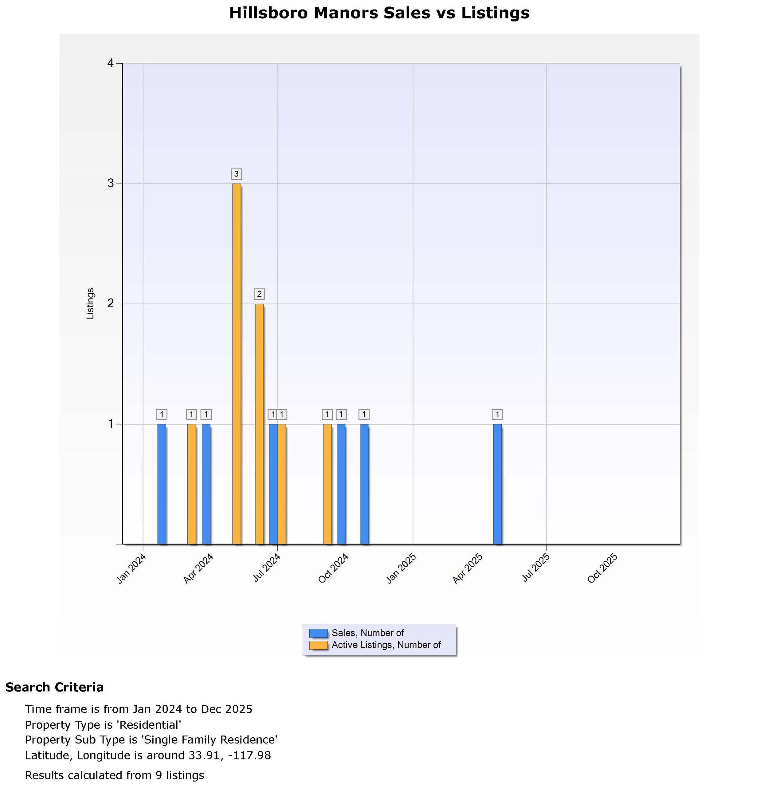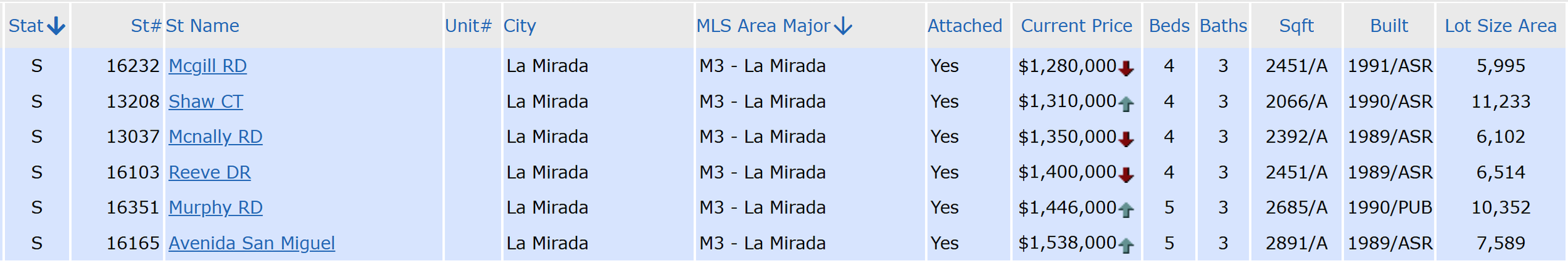 Homes are still selling quickly in La Mirada, with an average of 23 days to sell. For the last twelve months, sales in this neighborhood have averaged 14 days on the market per month