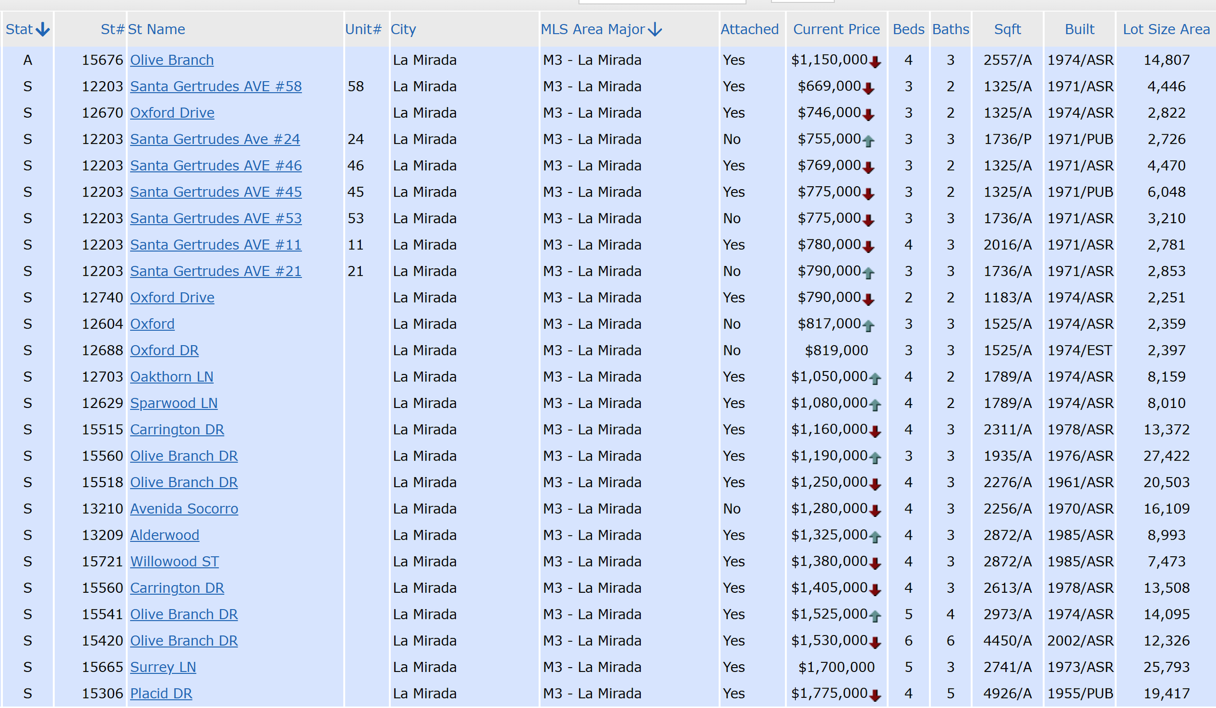 Overall, the North of Foster Rd East of Ocaso Area is doing well. The demand for this area has always been strong and will remain strong due to the neighborhood’s proximity to Regional Park, several churches, the golf course, Benton Middle School, and La Mirada High School.