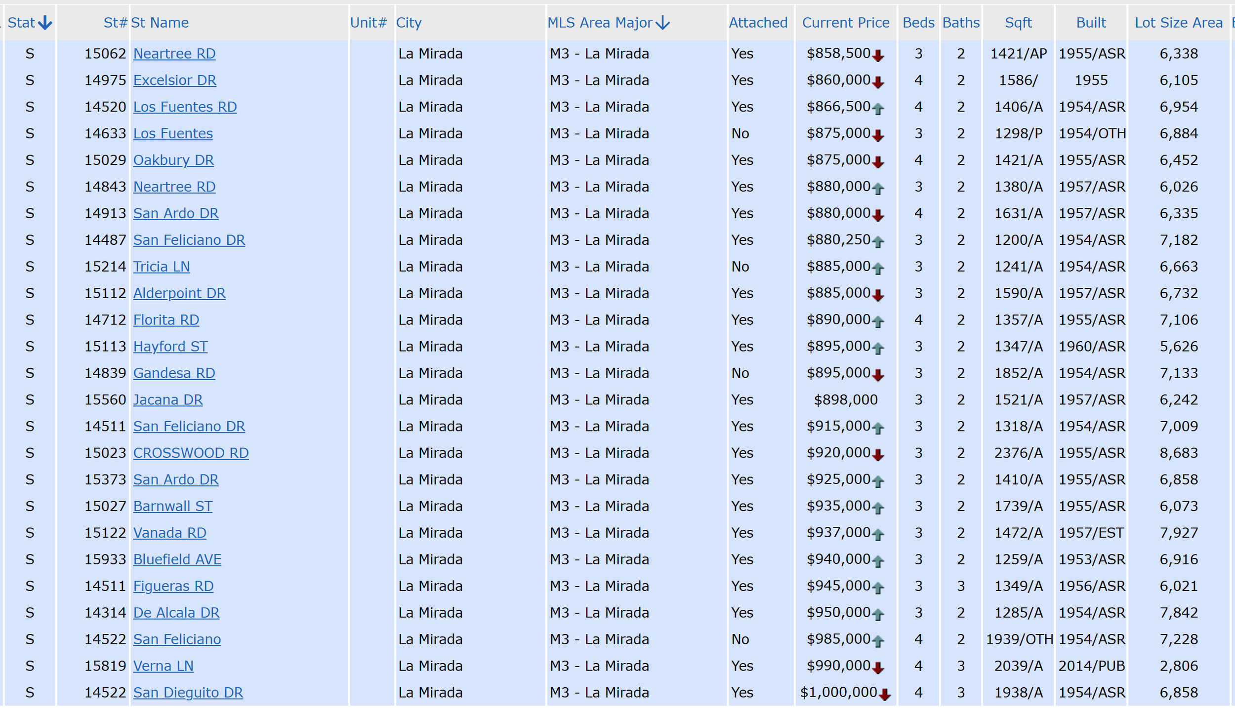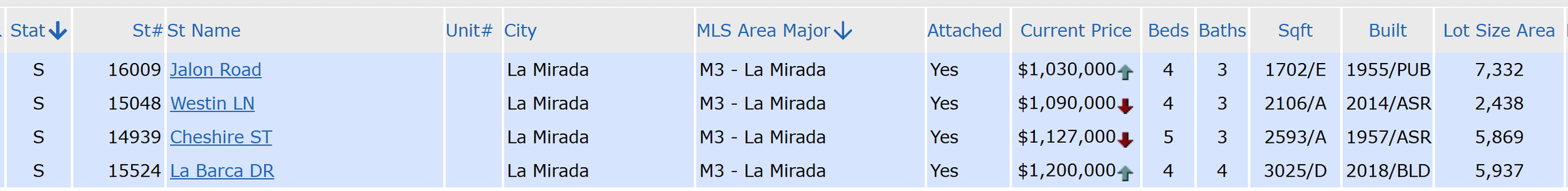 Overall, South West La Mirada is doing well. Demand for this neighborhood has always been good. With two parks at the ends, Neff and Windermere, for family time. Escalona Elementary School is in the middle. There is also Biola University near the north-west section, and the shopping center near the south-east section.