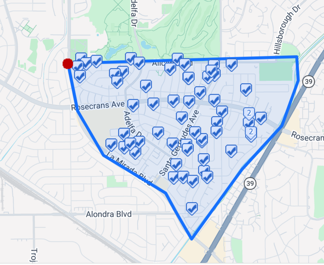 A map of current active listings and sales in Southeast La Mirada’s neighborhood for the last 12 months was used for analysis