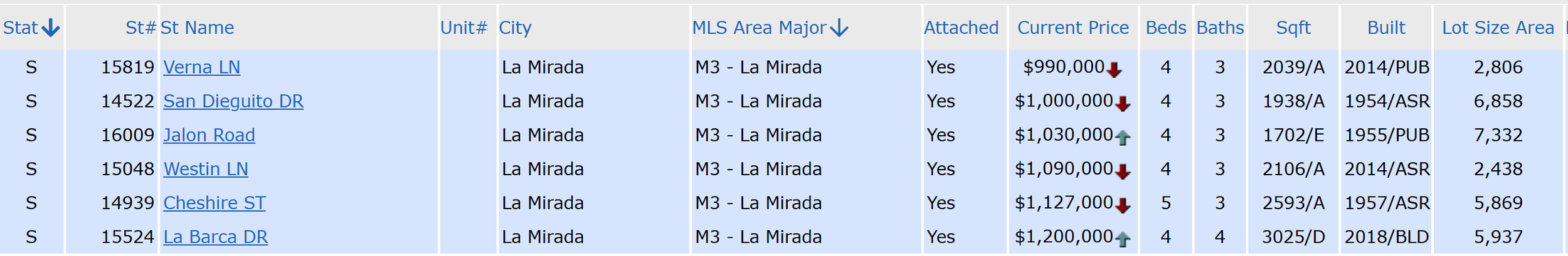 In the Southwest La Mirada Neighborhood, prices have declined by $33,000 over the last 6 months. When we examine the last 12-month average, prices have increased by $22,000. However, this increase should be reduced over the next few months. When we compare the Southwest La Mirada Neighborhood to the other 11 neighborhoods for which we have stats. 3 of them had no sales in the last 6 months. 6 had a decrease (like this neighborhood) in their average price over the last 6 months. 5 had an increase in their average price over the last 6 months. This resulted in a citywide average loss of $26,000 over the last 6 months. Like most cities in the surrounding area, La Mirada prices are going down.